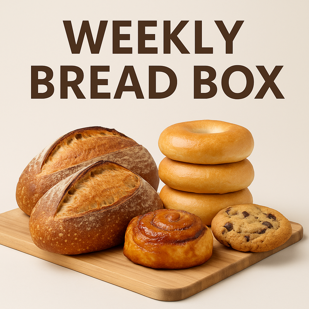 “Fresh sourdough, bagels, and sweet treats—delivered right to your door in San Antonio. Choose from Weekly, Bi-weekly, or Monthly Bread Box subscriptions and enjoy handmade loaves crafted with care. Always fresh, always local, always baked in the moment.”